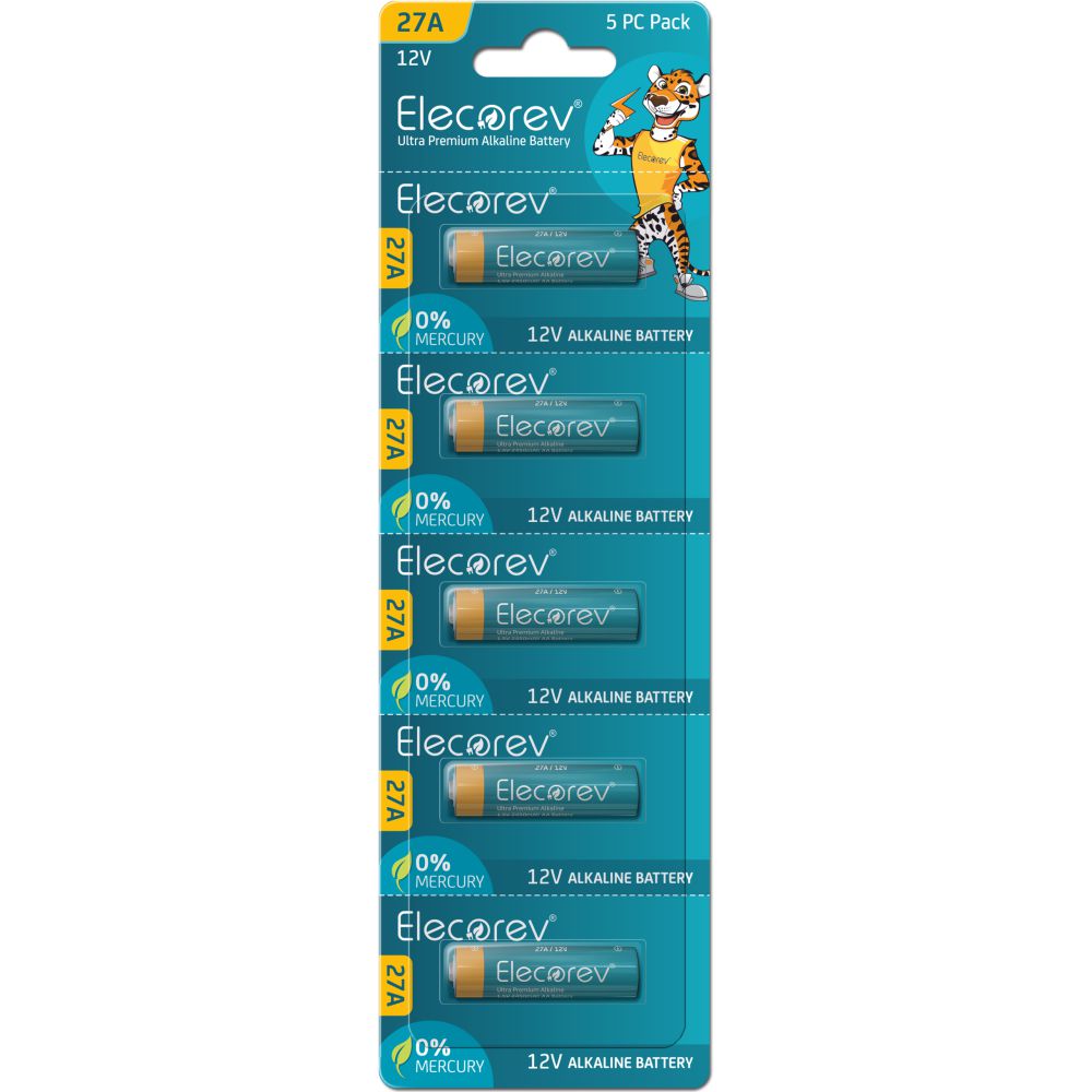 Elecorev alkaline 27A battery, compact and cylindrical, is engineered to provide a consistent 12-volt output. Tailored for small electronic devices like remote controls and key fobs, this battery ensures reliable and enduring power for various applications requiring a compact and efficient energy source.