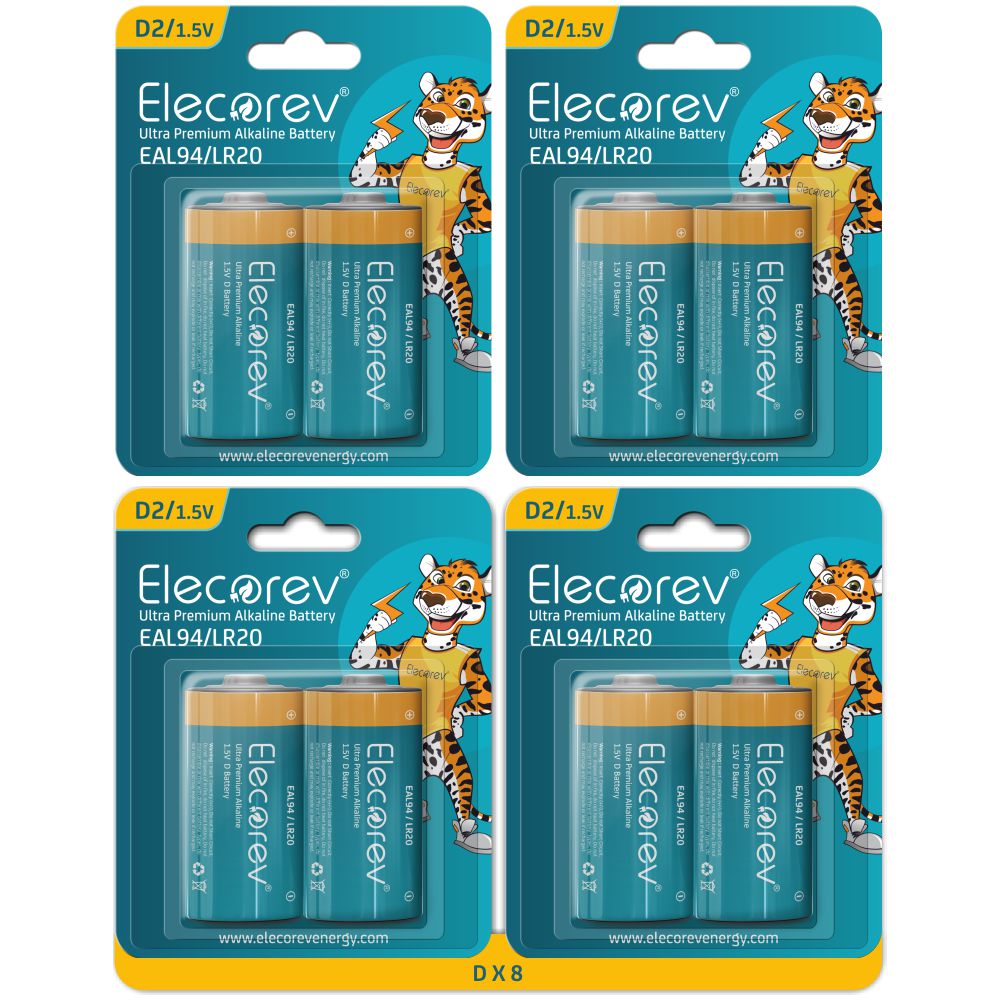 - Elecorev Alkaline batteries are ideal for devices requiring moderate power.